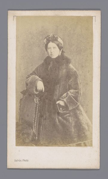 Curator: This image, captured by the McClees Gallery, depicts Peg-a-no-ke-shick, also known as Hole In the Day, a Head Chief of the Chippewa or Anishinabe people of Minnesota. Editor: The sepia tones and the sitter's averted gaze lend this portrait a rather melancholic air. It's a study in muted browns and tans, softened by the photographic process. Curator: It’s crucial to note the context. Photography like this was often used to document and sometimes exoticize Native American leaders, reflecting a power imbalance during westward expansion. Editor: I agree, and yet, consider the composition. The subtle diagonal of his seated pose, the way his hands are clasped—it imbues him with a quiet dignity that transcends the potentially exploitative setting. Curator: Indeed. The act of sitting for a portrait, adopting Western dress—these were strategic acts of representation, attempts to negotiate a rapidly changing world and assert continued sovereignty. Editor: Ultimately, the photograph’s texture and composition speak to a deeper human connection. Curator: A poignant reminder of a complex history.