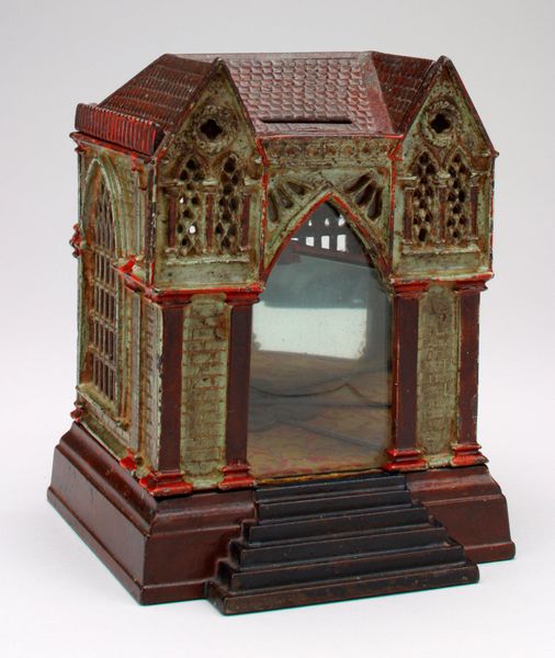 This is Doras A. Stiles's mechanical bank titled -Home Bank (no Dormer Windows)-. The bank is made of metal, and the specific date of its creation is unknown. The concept of a ‘home bank’ speaks volumes about the values of a society that encourages individual savings and investment. A closer look reveals the gendering of financial spaces at the time, where women, often confined to the domestic sphere, were subtly encouraged to participate in the financial world through these home-based banks. Simultaneously, it reinforced the idea of the home as a space of financial responsibility, subtly placing the burden of economic stability on the individual. It evokes a sense of aspiration, the desire to own property, and the emotional security associated with having a home. This "Home Bank" embodies the ethos of self-reliance while hinting at the complex relationships between gender, domesticity, and economic empowerment.