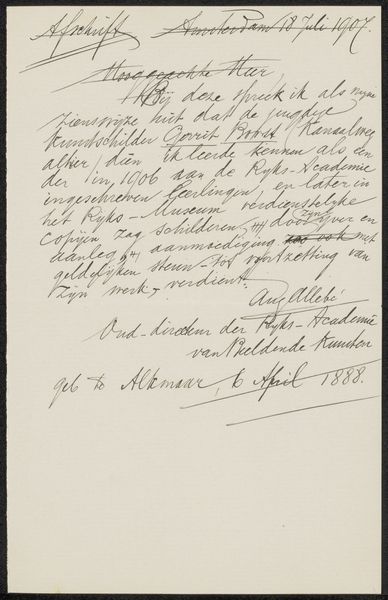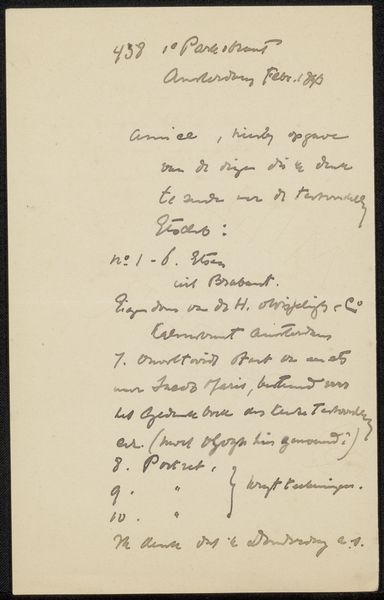 This note, "Brief aan Philip Zicken," was written on May 3, 1905, by Pieter Dupont, probably with a steel nib pen and iron gall ink, right on the paper, and the ink biting the paper as he worked. The list describes costs of things – maybe for an art project or a business transaction, the script is clear, looping, and confident, though, with a consistent pressure in the hand, like a dancer who’s done these steps a thousand times. Looking at the words grouped together it almost creates a visual poem that exists as a landscape or a visual score. It's fascinating how the mundane act of writing transforms into art through time and distance. Think of Cy Twombly, another artist who used handwriting as a gesture. Both artists remind us that art is not just about the finished product, but the thinking, doing and seeing that goes into it. It’s about embracing the ambiguity and multiple interpretations that make art so compelling.