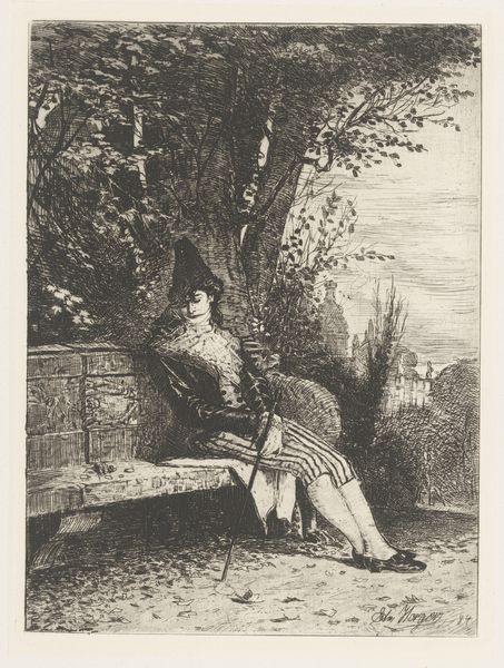 Carl Cristiaan Fuchs created this tiny etching, “Woman with Dog,” using a sharp needle to scratch lines into a coated metal plate, which was then inked and printed. Look closely, and you’ll see the incredible control Fuchs had over this demanding medium. The image teems with tiny hatch marks, creating a range of tones and textures, from the furry dog to the foliage overhead. The figure is carefully modeled with light and shadow, giving her a quiet dignity. Etching was a common method for reproducing images at this time, a kind of proto-photography. But don’t let that fool you into thinking it was easy. The production of prints like this involved not only Fuchs’s skill, but also the labor of others who prepared the plates and ran the printing presses. When we consider the full process, and the social context of printmaking, it becomes clear that this modest image is more than just a picture, but a testament to the value of skilled work, and the complex relationships between art, labor, and technology.