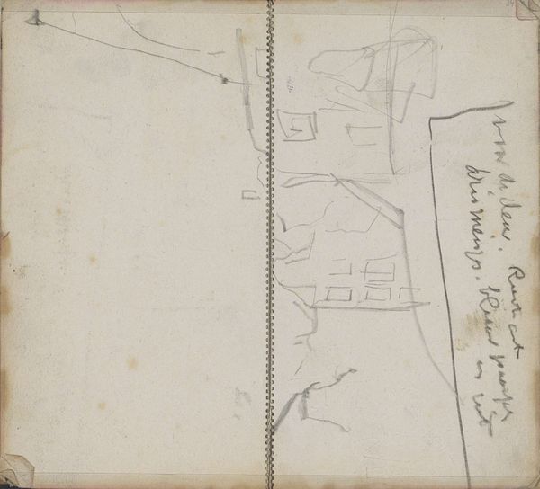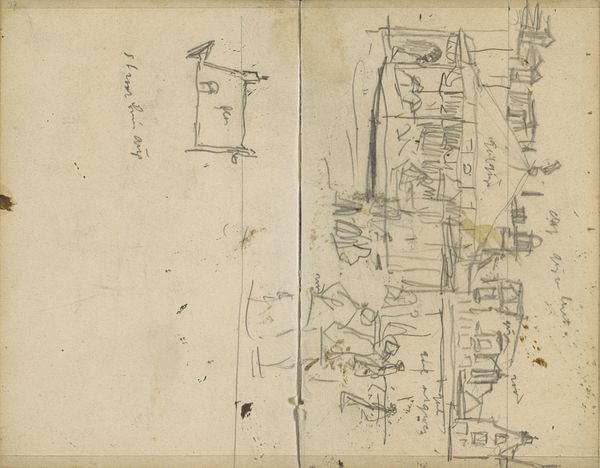 George Hendrik Breitner created this sketch, "Spelende kinderen op de Pijpenmarkt," in Amsterdam using graphite on paper. The material itself, a common notebook, speaks to the immediacy and the everyday nature of Breitner's subject. The graphite allows for quick, gestural lines, capturing a fleeting moment of children playing in a busy market. The weight of the graphite gives depth and shadow, while the texture of the paper subtly influences the strokes, lending a sense of movement to the figures. Breitner was known for capturing the energy of city life, and the sketch shows the social context of Amsterdam. The humble materials and the sketch-like quality challenge traditional distinctions between fine art and craft. Breitner finds beauty not in highly refined art materials, but in the act of observing and recording the world around him. The medium is essential to the message.