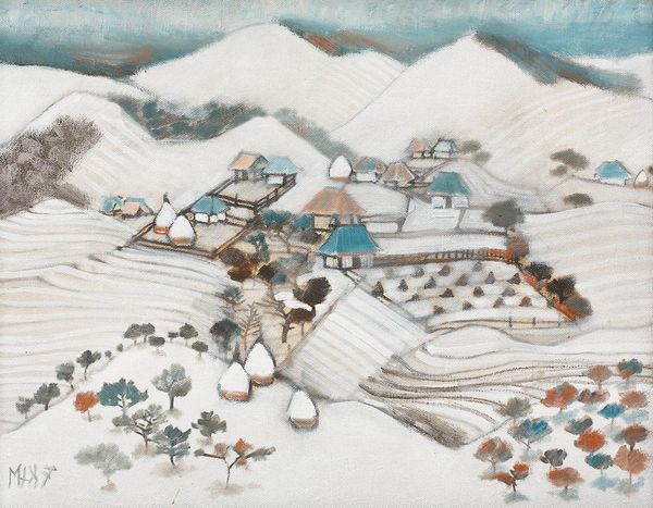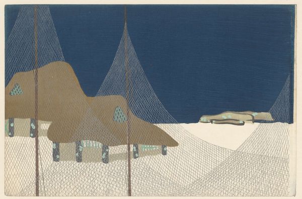 Editor: Here we have "Great Bridge at Sanjō in Kyoto" by Hashiguchi Goyō. It's a lovely print, very serene with the snow falling. I'm curious, what details stand out to you? Curator: I notice the woodblock printmaking process. The labor involved in carving the blocks, the materiality of the paper and ink, all speak to a specific production method. How does this process influence our perception of the scene itself? Editor: That's interesting. It makes me think about how the availability of materials might have shaped the artist's choices. Curator: Precisely. And consider the social context: woodblock prints were often produced for mass consumption. How does that affect the work's perceived value versus, say, a unique painting? Editor: It really shifts my perspective. I'm seeing the bridge not just as a beautiful scene, but also as a product of its time. Thanks for pointing that out. Curator: My pleasure. It's about understanding art's creation and consumption.