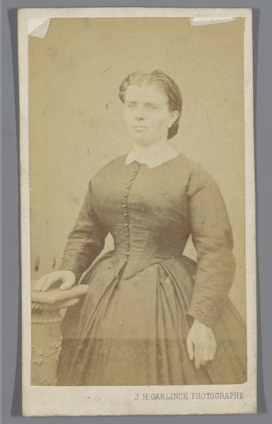 This small photograph, made by Willem Gerhardus Kuijer, captures an unknown seated woman. Her hands are gently clasped, a gesture of both restraint and composure. The bow at her throat—a dark, almost somber flourish—draws the eye. This motif, the ribbon, is more than mere adornment. It is a symbol that reappears throughout history. Consider the bows in Renaissance portraiture, or the draped fabrics in classical sculptures. These elements often signify mourning or transition. This symbol echoes across time, each iteration shaded by the era’s sensibilities. Here, in this photograph, the bow evokes a sense of decorum, perhaps a veiled acknowledgment of life's transient nature. These recurring symbols remind us that art is never created in isolation. It emerges from a deep well of collective memory, a subconscious dialogue across generations.