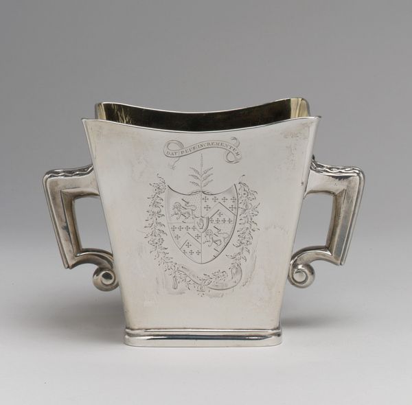 Here we have a coffee cup crafted by an anonymous artist, a piece that invites us to consider the interplay between form and function. The cup presents itself as an octagonal prism with each facet serving as a canvas for low-relief ornamentation. Notice how the white glaze unifies the form, yet the textured surfaces introduce shadow and depth, complicating our perception of the object's shape. The handle, a sinuous curve, disrupts the geometric rigidity, offering a tactile counterpoint. What stories do these emblems tell, and how do they intersect with the cup's purpose? It is in this tension—between the cup's utilitarian role and its decorative ambition—that the work intrigues. It encourages reflection on how objects mediate our relationship with culture and daily life.