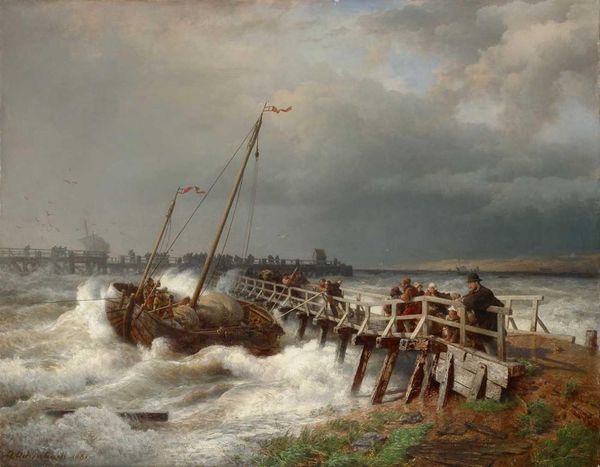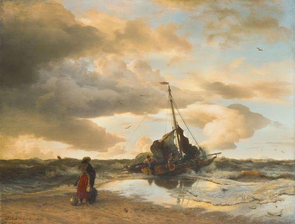 Andreas Achenbach painted this seascape in oils, capturing a moment of peril and human struggle against the elements. Born in Germany, Achenbach's dramatic seascapes gained popularity across Europe. This painting, with its turbulent waves and straining boats, speaks to the power of nature and the vulnerability of those who depend on it. Images like these gained popularity at the time due to the rise of industrialisation and urbanisation, which created a longing for the Sublime found in nature, the sense of awe mixed with terror in the face of something larger than ourselves. Looking closely, we can almost feel the chill of the North Sea and the spray of the waves. It is the role of the historian to consider how cultural and economic shifts influenced art production and Achenbach’s work offers a window into 19th-century sensibilities, shaped by the forces of nature and the changing relationship between humanity and its environment.