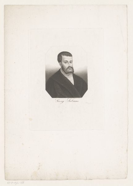 Editor: Here we have "Portrait of an Unknown Man," a pencil drawing on paper, created around 1825 by an artist known only as Monogrammist CG. The delicate pencil work gives the piece a somewhat ethereal, gentle feel. How would you interpret it? Curator: The reduction to fundamental elements commands our attention. Note the meticulous detail in the rendering of the subject's features versus the relatively bare surroundings. The artist directs our gaze through tonal contrast, isn't it? Editor: Yes, it does draw your eye right to the face. It’s almost as if the background is secondary. Curator: Precisely. Consider the composition: the oval vignette, centrally placed. The confinement within this shape invites scrutiny of the facial expression, the set of the jaw, the fall of light on the open collar. Editor: I hadn't really thought about how the oval contributed. It seems to isolate the man, almost like a cameo. Curator: Indeed. Observe also the restrained palette – predominantly shades of grey and white. The subtlety further emphasizes the lines and the artist’s precise handling of light and shadow to model form. Does this economy of means diminish or amplify the artwork's impact? Editor: I think it amplifies it, actually. The simplicity almost forces you to examine the technique and form more closely, like you were saying. Curator: Correct. By analyzing these inherent visual properties we gain deeper appreciation for the artwork's inherent artistic value, regardless of the sitter's identity or the historical context, wouldn't you agree? Editor: I do. Focusing on the line and light really changed how I see the drawing. It feels much more deliberate now.