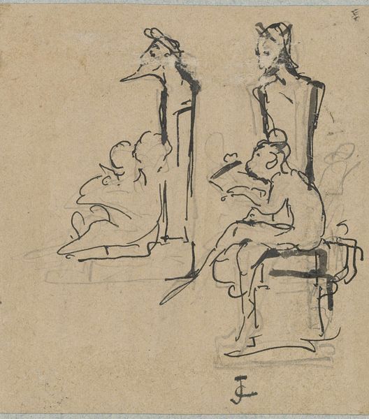 Editor: Here we have Kawanabe Kyosai's "Sketches of East Asian Legendary Figures," created sometime between 1867 and 1889. It's an ink drawing on paper, currently residing at the Met. They feel spontaneous, but each character is so distinct. How would you approach interpreting this work? Curator: For me, the power lies in examining Kyosai's process. Notice the quick, confident ink strokes. It speaks to a mastery gained through years of labor, transforming the mundane act of sketching into a sophisticated form. Consider the socio-economic context. Paper and ink, while relatively common, still represent a resource. The artist's access to these materials suggests a certain level of patronage or marketability, influencing both the creation and dissemination of his art. What was the cultural value placed on sketch making in Japan? Editor: That's interesting; I hadn’t thought about access to materials influencing his art. Are you saying the *materials* themselves can change how we understand the artist's status and, maybe, even their intentions? Curator: Precisely! Think about the ink itself: Where did it come from? Who made it? These drawings are also inherently connected to a network of labor and consumption. This wasn't a solitary act, but the product of various interconnected processes, from resource extraction to artisanal production. This piece compels us to confront traditional art historical notions by embracing material analysis. Editor: I always thought about the imagery *in* a piece being symbolic but never that the medium itself carried a social story! I see this sketch in a new light now. It makes you consider where artistic choices come from, culturally. Curator: Exactly! By focusing on materiality, we're questioning boundaries between “high art” and the everyday objects. We acknowledge the work involved in crafting art. The materials carry layers of cultural and economic implications. It is exciting, no?