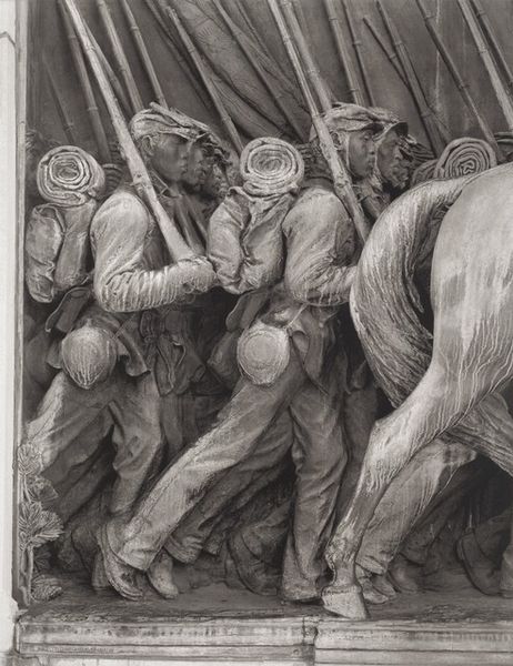Richard Benson made this photograph of the Robert Gould Shaw Memorial at an unknown date using photogravure. The memorial commemorates Colonel Shaw, who led the first all-Black volunteer regiment, the 54th Massachusetts Infantry, during the Civil War. Benson’s print captures the emotional complexity and the historic importance of this monument. The memorial was created in a period of Reconstruction, amidst ongoing racial tensions and debates about citizenship and equality. It represents a pivotal moment in American history, highlighting the courage and sacrifice of African American soldiers who fought for their freedom. The photogravure technique used by Benson lends the image a depth and texture that invites contemplation of themes of heroism, identity, and collective memory. Benson’s choice of medium speaks to a desire to engage with the past in a tangible way, underscoring the continued relevance of the Civil War and its aftermath in contemporary dialogues about race and justice. It prompts us to consider whose stories are told, and how they are remembered.