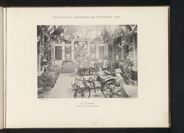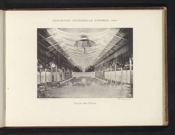 Th. Lantin's photograph captures the interior of the central hall of the World Exhibition in Antwerp. The black and white image immediately strikes us with its vastness and architectural complexity, using a grid-like structure in its ceiling and a symmetrical balance in the arrangement of exhibits. The high ceiling is counterbalanced by the horizontal lines of the display tables. The linear perspective draws the eye into the depths of the hall, the contrast between light and shadow creating a pattern that emphasizes the modernity of the structure. The photograph’s formal arrangement reflects a specific moment in history, mirroring the 19th century’s obsession with order, progress and classification, while also subtly questioning the very nature of display and representation. Each element – from the exhibits to the architectural design – contributes to the complex cultural code of the exhibition itself. Note how Lantin, through his careful structuring of the photograph, presents us with a staged representation of the world. It's a moment frozen in time, inviting us to decode its layers of meaning.