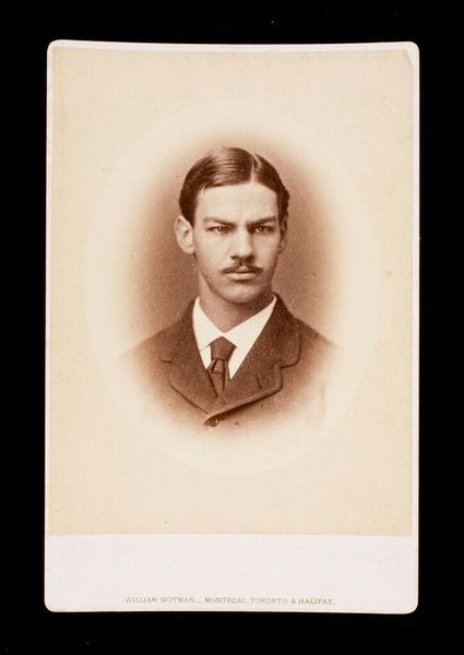 Editor: This is a portrait of Morton Prince by William Notman. It's a photograph, quite small, and it gives me a very formal, almost austere impression. What can you tell me about its historical context? Curator: Well, consider the social function of portraiture at the time. Photography democratized portraiture, yet studios like Notman's also reinforced social hierarchies. Who was having their portrait taken and why? Editor: So, commissioning a portrait like this was a statement in itself? Curator: Precisely. It projected respectability and status. Think about the sitter's pose, attire, and even the backdrop. It's a carefully constructed image intended for public consumption and social networking. Editor: I never considered the public role of early photography like that. Curator: Photography wasn't just about capturing a likeness; it was about crafting a social identity. Editor: I'll definitely view portraiture differently from now on.