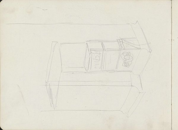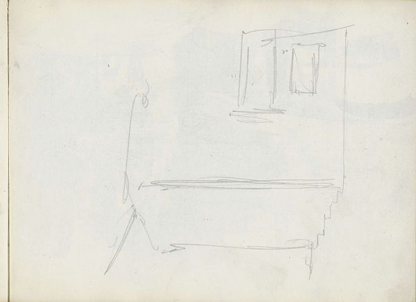Editor: Here we have Carel Adolph Lion Cachet’s "Ontwerp voor een kansel", or "Design for a Pulpit", created around 1905-1906. It's a pencil drawing on paper. My first impression is of something very simple and understated – almost a whisper of an idea. What catches your eye? Curator: Well, the beautiful thing about sketches is their potential, isn't it? It's like catching a thought before it fully forms. The Art Nouveau lines hint at the ornate, but the starkness feels almost modern. Does it make you wonder what the finished piece would have looked like? Imagine this pulpit in a dimly lit church. The carved details catching the candlelight... What do you think about the geometric elements in this work, do they make the sketch more or less appealing to your aesthetic? Editor: It does make me wonder about the final design, and it really does give an interesting mix between religion and design. The geometric parts make it even more appealing, like the design process is literally exposed to the audience and part of the piece, or a puzzle piece being worked out, which is interesting. Curator: Precisely! And Cachet, though known for his decorative work, also dabbled in the symbolic. Perhaps the simplicity points to a more austere spiritual experience, a move away from opulent displays. Sketches can be a space of incredible freedom, unbound by expectations. If this were a finished work, a fully realized pulpit, do you think that freedom would still translate? Editor: I suppose not! But as a sketch it becomes such a cool look into his artistic process and mind! It's not something you always see, which makes it even more interesting. Curator: Exactly, it's a dialogue with the artist across time. Something I feel lucky to have experienced with you today. Editor: Agreed. It makes you wonder about all the unseen ideas behind finished masterpieces.