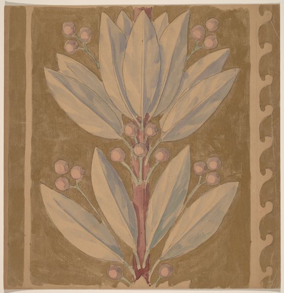 Editor: Here we have Martin Partyka's "Hand Painted Wall (Detail)," a watercolor drawing from around 1939. It’s a beautifully muted composition; a central floral arrangement framed by architectural flourishes. There’s a fragility and grace in the line work that strikes me. How do you interpret this work, especially considering its historical context? Curator: That’s a great starting point. Think about where this drawing may have existed - and why. Given its style and the date, this work might reflect the popular interest in folk art traditions or regional crafts promoted during the New Deal era. Artists were often employed to document and revitalize traditional art forms. Could this be a study or record of painted decorations found in homes, perhaps of Polish immigrants, given the artist's name? What can the decorative floral and architectural elements suggest to us? Editor: That makes sense. The New Deal emphasis on celebrating American identities... maybe it's a record of a fading cultural practice? The flowers could represent hope or remembrance. And the classical framing motif adds a sense of history. But the colours seem subdued for celebratory art; does that connect with the artist documenting it at the end of it's cultural importance? Curator: Exactly. The muted tones could indicate something beyond simple celebration - think about the social and economic conditions during that time. The Dust Bowl, the looming war in Europe. It's as though Partyka preserved it right as a vibrant cultural expression started to decline in usage. Is he trying to portray the slow decaying effect of new construction, perhaps to a traditional building? What kind of audience would it have, and in what medium should he create the work, if the message had to reach them most effectively? Editor: That really enriches my understanding. So, this artwork is more than just a pretty decoration, but a historical document laden with socio-political implications. Thank you, I appreciate you opening my eyes to the narrative beyond the visual charm. Curator: And thank you for drawing us in with that 'visual charm'!