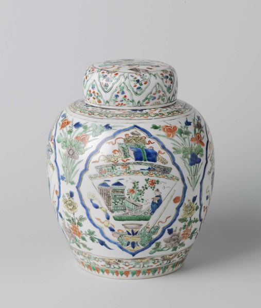 This is an anonymous faience soap box with a lid. The box presents a structured visual dance between the blue decorative patterns and the stark white background. The continuous, undulating lines of floral and vegetal motifs create an animated surface, almost like a linguistic code waiting to be deciphered. These aren’t merely decorations; they are signs, part of a semiotic system that invites us to interpret their cultural meanings. The choice of blue against white is not just aesthetic. It echoes historical trade routes and cultural exchanges. The interplay between form and function highlights a broader engagement with how art inhabits everyday life. Consider how the artist, despite remaining anonymous, destabilizes the boundaries between utilitarian object and art piece through surface design and structural form.