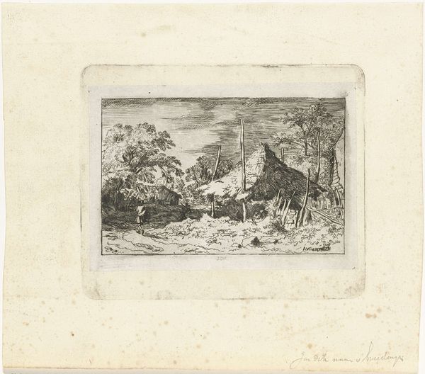 Editor: This is "Landscape with a Ruin on the Right," created between 1725 and 1763 by Quentin Pierre Chedel, an engraving currently held at the Rijksmuseum. It strikes me as melancholic, the ruined structure hinting at a lost grandeur, now reclaimed by nature. How do you interpret this work? Curator: What interests me most is Chedel’s process. Think about the labor involved in producing this image. The metal plate itself, the tools, the precise hand movements required for each line… it all speaks to a complex system of production and consumption in 18th-century Europe. Consider the engraver's role – not just as an artist, but as a skilled worker embedded in a particular socio-economic context. What materials were available? Who commissioned the work? Where was it intended to be sold and circulated? Editor: So, rather than focusing on the aesthetic beauty of the ruin, you're drawn to the more practical aspects of its creation? I hadn't really considered that angle. Curator: Exactly. The "beauty" itself is a product of labor, of available materials, and of specific economic structures. The image reproduces and thus perpetuates power structures. Think about the relationship between landscape art and land ownership, or the emerging print market's impact on the dissemination of ideas. These landscapes romanticize an era built by exploitation. Is there a tension between the romanticism of the ruin and the harsh realities of the society that produced both the ruin and the print itself? Editor: That's fascinating! It definitely changes my perspective. I was focused on the emotional impact of the image, but now I see how much the materials and context contribute to its meaning. Curator: Precisely! The artwork is not an isolated object, but a nexus of social and economic forces. Editor: Thank you. I learned how material conditions inform artistic expression, going beyond immediate impressions. Curator: And I got to reiterate the significance of considering labor and production, which are all-too-often absent when looking at works of art.