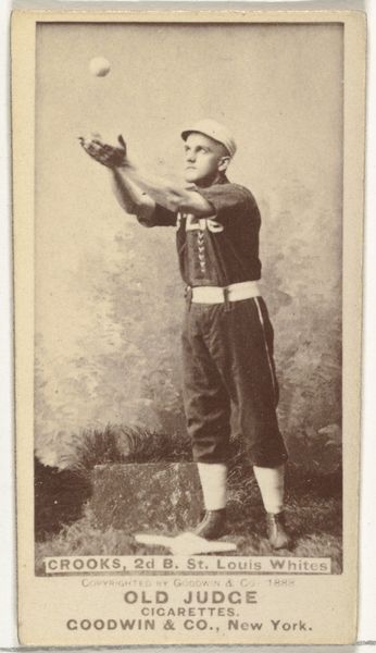 Goodwin & Company produced this Old Judge Cigarettes trading card of C. Crooks, 2nd Baseman for the St. Louis Whites, around 1888. These cards emerged during a period of rapid industrialization and urbanization in America, and captured the growing popularity of baseball as a national pastime. The card offers a glimpse into the performance of masculinity and commerce of the late 19th century. Crooks is presented in a moment of action, embodying strength, skill, and athleticism. These images were both a celebration of athleticism and tools for marketing cigarettes. The image creates a narrative that associates the consumption of tobacco with the virility and success exemplified by these athletes. This card reminds us of the intricate ways in which identity, commerce, and cultural values intertwine. It serves as a reminder of the stories we tell ourselves about who we are, and the roles that advertising and popular culture play in shaping those narratives.