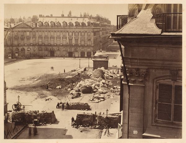 Editor: Here we have Emmanuel Pottier's photograph, possibly from 1898, depicting "Aanleg van de metro in Parijs"—the construction of the Paris Metro. It’s a gelatin silver print, and what strikes me most is the sheer labor involved, visible in every stone and mound of earth. What can you tell us about it? Curator: I'm drawn to that same emphasis on labor, absolutely. This isn’t just a document of progress; it's a record of immense physical work. Consider the materials: the stone, the dirt, the temporary wooden structures. Where did they come from? Who moved them, and under what conditions? Editor: That’s fascinating. I hadn't considered the materials in that depth. Curator: Look at the contrast between the seemingly solid permanence of the building in the background and the disrupted earth of the construction site. One represents established power, the other, transformative labor. Doesn't that suggest something about the changing landscape of Paris at the time? Editor: I see what you mean. The building looks almost indifferent to the upheaval. How would the average Parisian have viewed this construction, do you think? Were they aware of the disruption as progress, or something else? Curator: Exactly. How was this portrayed? Were the workers idealized or dehumanized? Images like this both reveal and conceal. The clean photograph obscures the mess, noise, and potential dangers of the actual work site, don't you think? Editor: Definitely. This photograph is both informative and mediated, leaving room for many possible interpretations. Curator: Precisely. It pushes us to look beyond the surface, to the hands that shaped the city, and the social implications of this "progress." Editor: Thinking about the materials and labor involved really reframes how I see this image. Thank you! Curator: My pleasure. Hopefully this helps all of us remember that art and artifacts can be examined in the framework of economics and production.
