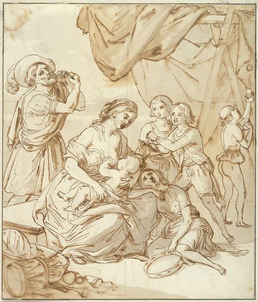 Editor: This is Nicolas Le Sueur's "Martyrdom of Saint Angelo," currently residing at the Harvard Art Museums. It's a sepia drawing, and the scene is incredibly violent. What aspects of power dynamics or social commentary are at play here? Curator: Looking at this piece, I'm drawn to the blatant display of violence against a religious figure. Consider the historical context: who held power, who was persecuted, and how does Le Sueur reflect those tensions in his composition? What kind of statement is he making by depicting this brutality? Editor: So you're saying the violence on display may reflect real-world social struggles? Curator: Precisely. Art often mirrors or critiques societal structures. How does this depiction of martyrdom challenge or reinforce the existing power dynamics of Le Sueur’s time? Editor: I never thought about it that way, very interesting! Curator: Examining art through a social justice lens reveals hidden narratives and challenges us to confront uncomfortable truths.