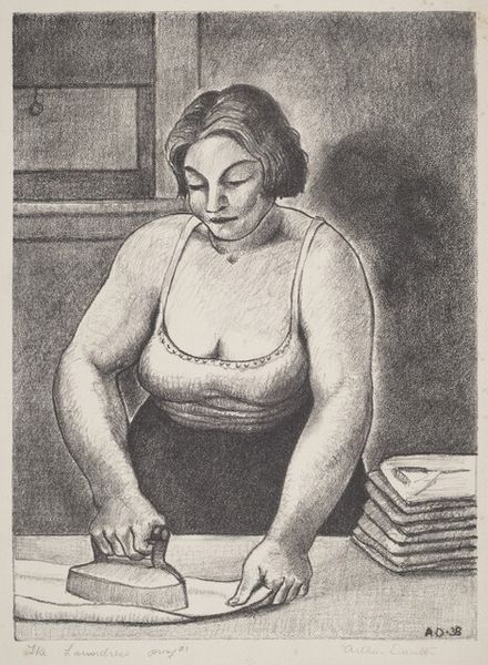 Benton Spruance created this lithograph, "I'll Be What I Choose: Vanity of Ambition," during a period marked by significant shifts in American identity and social values. Spruance, deeply affected by the Great Depression and World War II, used his art to explore themes of social justice and human dignity. In this print, a woman gazes reflectively at her reflection in a mirror; around her are a series of masks. Her ambiguous gaze and the multitude of masks ask us to consider identity as a performance of the self in society. Are those masks an opportunity or a constraint? By presenting identity as a choice laden with social expectations, Spruance invites us to question the roles we play and the authenticity of our ambitions. He challenges us to confront the emotional weight of these choices, reflecting on how personal desires intersect with broader societal pressures.
