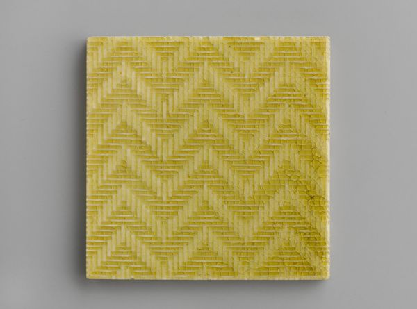 Editor: Here we have "Handwerk met doorstopvullingen," a print on paper created around 1900 by Aagje Tiket. There's something so delicate and precise about this piece, even with the subtle variations in each geometric shape. It’s like a beautifully patterned vintage textile. What's your take on it? Curator: Oh, I love that "vintage textile" connection! For me, this piece whispers of quiet dedication. It’s from an era obsessed with craft and detail. I imagine Tiket meticulously crafting each little design, each tiny triangle, maybe as a sort of meditative practice? It’s about more than just pattern; it's about the *process* of creation itself. What feelings arise when you focus on any singular shape within the bigger geometric structure? Editor: That's interesting, I didn’t really focus on one triangle. When I look at it individually, it's imperfect, with all the inconsistencies from it being printed and such. However, they do have variety and, in a way, give each its own character, personality and life. I also like that the patterns remind me of old Dutch samplers from around that period. Curator: Ah, absolutely. Samplers, like this print, often embodied both skill and creativity, don't you think? Each a small world containing larger feelings... But I am wondering: does its status as "print art" instead of textile, give it an extra-level of freedom? Editor: Yes! Because it allows you to go even more micro and make small and tight geometries that may not have been practical otherwise. Curator: See, and to me, *that* is the exciting dialogue between constraint and exploration within these small spaces. Editor: This has opened my eyes to how it may be pushing the boundaries. Curator: Mine too! Thank you! It’s about looking closer, isn't it? That single shift changes it all.