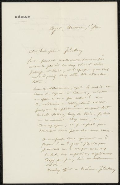 Editor: Here we have Carel F.L. de Wild's "Brief aan Philip Zilcken," likely from 1904, created using pen and ink. It strikes me as quite intimate, almost like peeking at a private thought. The script is dense and visually interesting. What do you see in this piece? Curator: It’s fascinating how handwriting itself acts as a symbol, a direct imprint of the author's personality and moment in time. Think of it: this script, these flourishes, were made by a hand that lived over a century ago. What emotions do you feel when you read that handwritten salutation, “Geachte Heer Z.”? Editor: A sense of formality, but also distance, since I can’t read the Dutch. Almost a bittersweet longing. Curator: Precisely! The visual style and content act together, forming a unique connection between viewer and author. Do you find that this aesthetic connects to any other visual cues that resonate with cultural memory or continuity? Editor: I’m thinking of illuminated manuscripts – it has a similarly deliberate and beautiful feel, though much less adorned. Curator: A beautiful comparison! And the ink itself – a medium so central to communication, legal documentation, and personal expression. Notice how the density of the ink, and its texture create a mood of either openness or constraint. Think about that balance. Ultimately, every tiny stroke carries meaning. Editor: So, by looking at these "small" details, we can decode more complex emotions! Curator: Exactly. The image reminds us that visual artifacts such as handwriting can connect deeply with cultural memory, creating both understanding and yearning. Editor: I hadn't thought about it that way. Now I'm more attentive to these nuances. Curator: Which makes the letter an extraordinary artifact of not only a specific thought, but also our continued human interaction across the ages.