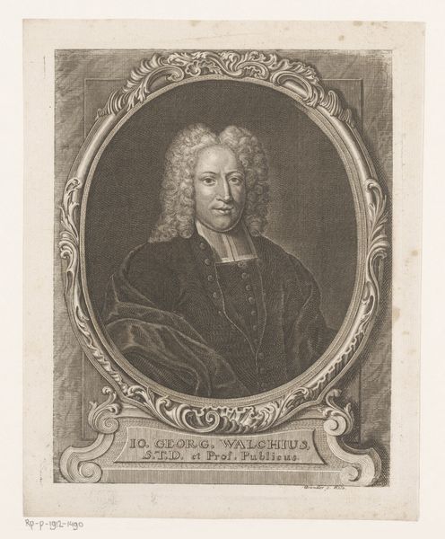 Curator: Here we have Tobias Laub’s "Portret van Johann Jakob Scheuchzer," created in 1731. The engraving on view here at the Rijksmuseum offers us a fascinating glimpse into the life of the titular subject. Editor: My first impression is one of studied seriousness. The textures created with engraving are quite interesting - especially the juxtaposition of the heavy velvet robe with the delicate objects laid out on the table. Curator: Absolutely. I’m particularly drawn to how the labor of producing engravings like this—replicating images for wider circulation—shaped perceptions and access to knowledge in the 18th century. The print served not just as a portrait but also as a tool for constructing Scheuchzer’s public persona and bolstering his scientific authority. Editor: And consider the visual politics at play. The choice of including natural specimens—the shell, the fish, the plant—connects him directly to the burgeoning scientific discourse of the time and his encyclopedic knowledge. We see this through the lens of what was considered a scholarly gentleman of the period. Curator: Indeed. The composition directs our gaze, focusing on his hand gently placed near those specimens— a visual anchor connecting the man, the objects, and the book. Each element crafted with careful and precise use of the engraving tools. The work becomes evidence of skillful artisanal labor, effectively mimicking the tactility and substance of skin, cloth, and nature itself. Editor: You bring up an excellent point regarding this image as evidence, not only of craft but also as a demonstration of societal power structures that favored certain individuals, classes and intellectual pursuits above others, and which institutions reinforced those hierarchies. Who would see this? Where would it circulate, and how would it contribute to shaping perspectives on science and the natural world in Europe? Curator: I hadn’t considered that angle as closely as you, but seeing how it portrays science is quite telling about the dissemination of knowledge. Editor: It's interesting to consider how these portraits circulated and served to solidify reputations. Each time this print was made and distributed it would enhance the power structures. Curator: Well, thanks to our time looking more deeply at the "Portret van Johann Jakob Scheuchzer," it highlights the impact of material culture. Editor: And it reminds us how historical portraiture served, both subtly and overtly, to affirm particular social roles.