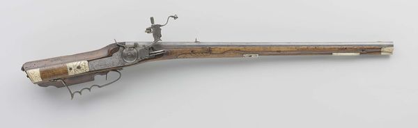 This breech-loading gun was made by Joseph Alexandre Robert, and is now held at the Rijksmuseum. It's constructed primarily from steel and wood. The steel, essential for the gun's firing mechanism, is precise and functional, reflecting the Industrial Revolution's impact. The wooden stock, shaped and polished, provides a tactile contrast to the cold steel, revealing a blend of utility and craft. The design is efficient: a smoothbore barrel with a calibre of 16.3 mm, designed for rapid firing. The Robert system breech-loading mechanism was innovative, allowing for faster reloading compared to muzzle-loading firearms. This technological advancement reveals a shift towards mass production and military efficiency. Ultimately, the gun's significance lies not only in its technological ingenuity, but also in its social context. As we consider this object, let's remember that even a weapon is deeply intertwined with the hands that made it, and the society that demanded it.