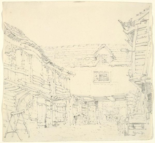 Editor: Henry Edridge's drawing, simply titled "Rouen," captures a scene from everyday life. It feels immediate, like a fleeting glimpse. What visual cues do you think carry the strongest historical echoes? Curator: The tower, certainly. It’s a potent symbol of Rouen's medieval past, but consider the placement of the figures. Their presence transforms it from a relic into a lived space. The relationship between the people and the architecture tells a story about continuity and adaptation, how places retain meaning and accrue it. Editor: That’s a fascinating point! It makes me see the drawing as a conversation between past and present. Curator: Precisely. Edridge uses familiar forms to evoke memory and cultural identity. Thinking about the lasting power of images and places can also help us consider our roles in creating collective memory today.