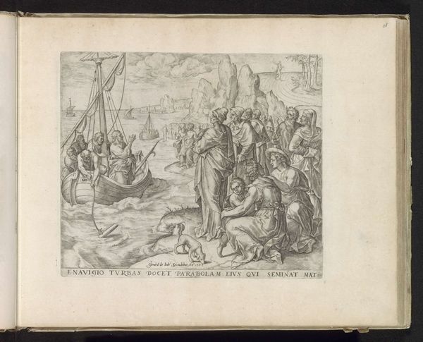 Editor: So, here we have Pietro Aquila's 1675 engraving, "Salomo door Sadoc tot koning gezalfd," which depicts the biblical coronation of Solomon. I am immediately struck by the dynamism of the scene—so many figures, all rendered with these really energetic lines. How do you interpret the scene, and what are some of the key aspects you find particularly compelling? Curator: Ah, a print! Wonderful. First, it reminds me of the way stories used to be shared before Netflix took over our lives; these engravings really did carry history, didn't they? The line work here is fabulous, especially the expressions. Aquila has captured this potent moment with real flair! Have you noticed how all eyes are on Solomon, except Solomon’s? It adds an almost melancholic layer, a subtle tension amid all the ceremony. What do *you* make of it? Editor: That's fascinating! I hadn't quite focused on Solomon's expression specifically – more generally, on how animated everyone else looks! He does seem kind of… distant. Is this something you see often in depictions of coronations, or does it tell us something particular about Solomon's story? Curator: Coronations are such theatrical affairs! Often brimming with posed displays of enthusiasm and contrived excitement. Here, there’s an acknowledgment that power comes with a cost, perhaps a foreshadowing of the burdens that await Solomon? Look at the raw, expressive quality of the faces surrounding him versus his more sedate posture – almost an abdication of immediacy. Perhaps Aquila wanted to remind us that those crowned, though elevated, are also forever burdened. Do you feel it captures the *sacredness* of such an event? Editor: I think I do get that. I came looking for a scene of triumph, but seeing it described that way makes the whole thing feel a bit heavier, and perhaps a lot more human. Thank you! Curator: Indeed! A king isn’t *just* crowned with glory, you see, he's crowned with responsibility, with human hopes, and maybe even our collective anxieties. And we got to unpack this from one fabulous etching.
