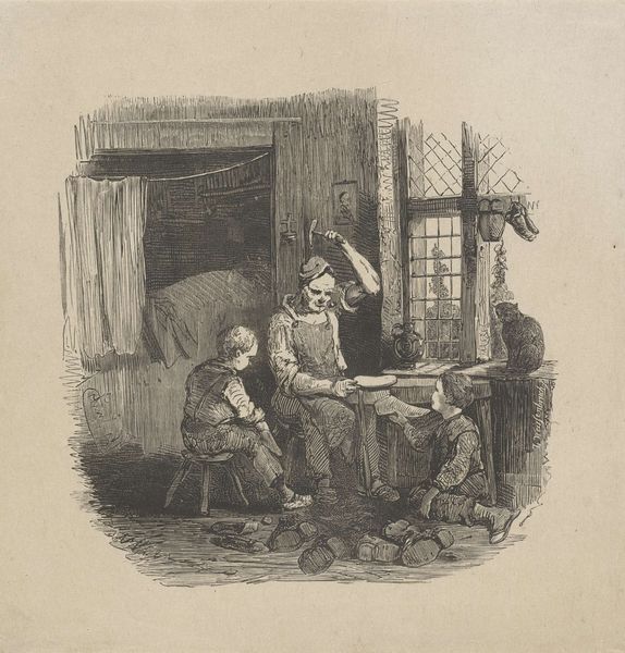 Curator: Here we have "The Poultry Merchant" by Pierre Audouin, a French artist active in the late 18th and early 19th centuries. It resides in the Harvard Art Museums. Editor: It feels so grounded. Look at the textures: the feathers, the weave of the basket, the rough stone of the building. You can almost feel the weight of the day's labor. Curator: It presents a fascinating glimpse into the visual culture of the era, revealing details about commerce and social interaction. The figure on the left, for example, seems to represent a shift in the economic landscape. Editor: I agree. It's all about the labor involved, isn't it? The processing, the selling—these daily activities are not so detached from high art as some might think. Curator: Exactly, the image functions as a historical artifact, reflecting societal values and the roles of women in the marketplace. Editor: It makes me think about the tools, the techniques… the hands that prepared the scene we see. It offers a certain immediacy.