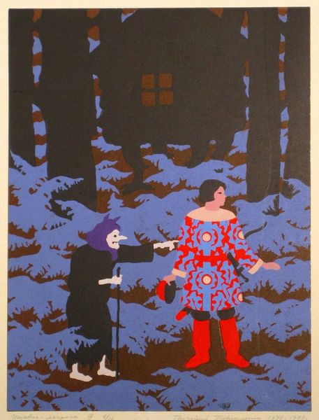 Curator: Kobayashi Kiyochika created this woodblock print, "Braving the Bitter Cold, Our Troops Set Up Camp at Yingkou," now residing at the Harvard Art Museums. Editor: Oh, it’s absolutely haunting! A solitary figure warming their hands by an eerie, almost spectral fire. The mood is pure, palpable loneliness. Curator: The print depicts the First Sino-Japanese War, reflecting the rise of Japanese nationalism through popular media. Kiyochika, known for his innovative light effects, often captured contemporary events. Editor: That fire...it's mesmerizing, yet melancholic. It's as if the fire also represents a fleeting moment of warmth against the backdrop of enduring conflict and suffering. What do you suppose? Curator: I agree—the fire, framed by the title, acts as a commentary on fleeting comfort amidst the grim realities of war and empire. Editor: It’s a stark reminder that even in the face of grand historical narratives, individual experiences of hardship and isolation persist. That hits home. Curator: Indeed, Kiyochika's print highlights the power of art to reveal the human cost of conflict. Editor: A poignant glimpse into a frozen moment in history, seen through an artist's soul, not just a reporter's lens. That’s what makes it art.