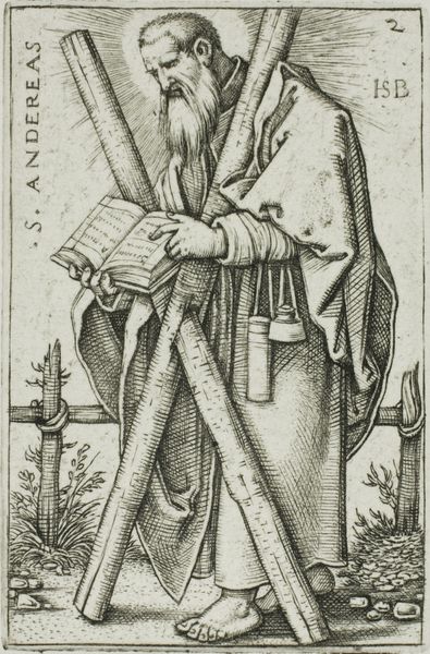 Editor: So, here we have "The Prophet Malachi, from "Prophets and Sibyls," an engraving that dates back to somewhere between 1480 and 1490. Looking at it, I'm struck by the Prophet's gaze. It seems so intense. What do you see in this piece? Curator: This engraving gives us an entry point into the intersection of religion, politics, and identity during the Italian Renaissance. Think about the role of prophets in society, particularly how their messages challenged power structures. How might Malachi's message, and its interpretation at the time, have resonated with marginalized groups or those critical of the Church's authority? Editor: So, it's not just about the religious figure himself, but the context of how his image and message were received? Curator: Precisely! Consider the visual elements – his clothing, posture, and the text surrounding him. What do those details tell us about how power and authority were constructed and challenged during that time? Engravings like this circulated widely, becoming powerful tools in shaping public opinion and even inciting social change. What kind of political or social "statements" can you interpret in this image? Editor: The text at the bottom...I wonder what impact his words could have had then? I hadn't really considered that images were more than just pretty pictures, they also might've carried potentially dangerous ideas. Curator: Absolutely. This image is less a devotional portrait and more a political manifesto cleverly disguised within religious iconography. And to think, a simple engraving could be such a powerful tool for social commentary! Editor: Wow, I definitely see it differently now. It really underscores the relationship between art and activism in the Renaissance.