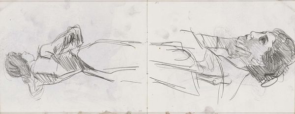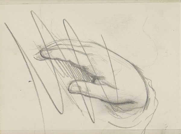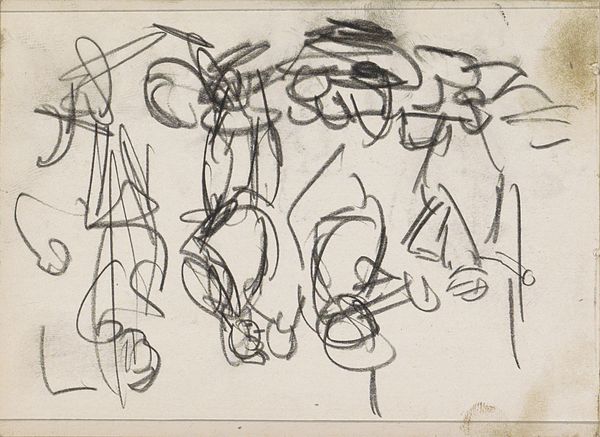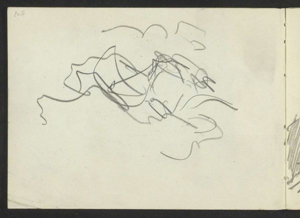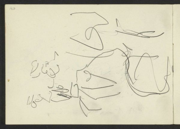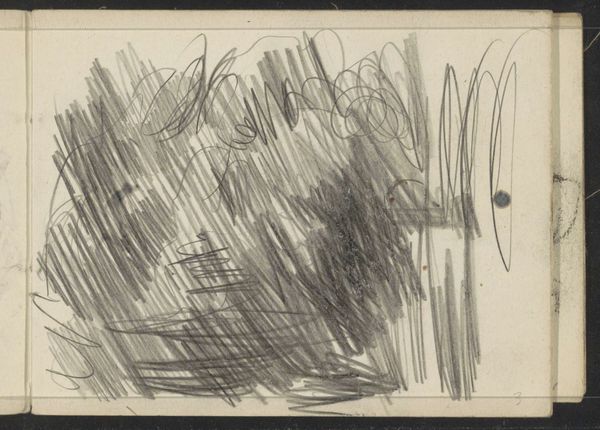 Curator: This little drawing really buzzes with a certain… nervousness, I think. All those frantic pencil lines! Editor: Absolutely, and they’re deliberately stark. This is George Hendrik Breitner's "Studie," created sometime between 1886 and 1890. It’s just graphite on paper, housed here at the Rijksmuseum, but it suggests a radical shift toward abstraction for the time. Curator: I love "little drawings" that punch above their weight. It reminds me of those flurries of sketches artists sometimes make, trying to catch a thought before it evaporates. What do you make of it from a socio-historical viewpoint? Editor: Well, Breitner was known for capturing the energy of Amsterdam's streets and working classes. Drawings like this, although abstract, might be attempts to grasp the lived experiences of people during a time of great social and economic change. The swiftness of the lines suggests a fleeting, almost furtive quality—echoing, perhaps, the precariousness of modern life. Curator: Interesting point! To me, they suggest a painter searching for a new vocabulary, willing to deconstruct images, almost to un-learn the established styles… a liberation of seeing. What about line? What does the quality of the line express here, would you say? Editor: The use of line, I think, reflects a kind of urgent realism that transcends mere representation. Breitner isn’t simply sketching what he sees, but also capturing the invisible forces acting on it. This reminds me of the situationist theory of the dérive, wandering aimlessly, yet always aware of underlying systems. Curator: That sense of "forces," invisible yet keenly felt... almost like capturing a haunting… You see it as intentionally conveying societal systems. For me it expresses almost the feeling of unorganized feelings of one’s person being fragmented and brought together. It resonates on a purely human, psychological level too. What a thought! That Breitner unconsciously captured those urban tensions through something as elemental as the scribbled line. Editor: And it is through these elemental lines that, to this day, "Studie" stimulates dialogues on social existence, modernity, and subjective perception. A small study that opens up huge themes. Curator: A perfect meeting of artist’s hand and urban tremor. Just wonderful to see it at Rijksmuseum.