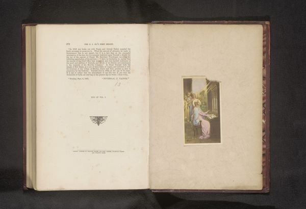 Editor: Here we have "Reproductie van een ontwerp voor de Wereldtentoonstelling van 1885 te Antwerpen door Frans van Kuyck," which is a print on paper. The engraving presents a framed allegorical scene. I am struck by the stark contrast and how contained the design feels within the page. What are your initial thoughts when examining its composition and structure? Curator: My attention is drawn immediately to the symmetry within the frame. The central figure commands space and divides textual from representational elements, yes? Note how the decorative border, with its repetitive motifs and enclosed portraiture, constrains the composition. Do you observe how the artist utilized the tonal gradations in this engraving to articulate form? Editor: Yes, I see what you mean. The figures in the lower portion are far less distinct, almost fading into the background. It directs our gaze upwards towards the standing figure. Why choose an engraving with such limited tonal range and rigid structure? Curator: The constraints inherent to engraving -- the precise, unwavering line, the limitations of tonal depth – contribute to a sense of disciplined control, perhaps even mirroring the aspirations for order and progress that underscored such world expositions. And, consider, too, how line directs our eye: Does the eye follow lines in one area or multiple regions simultaneously? Editor: I see. So, the form mirrors the content by suggesting order. It’s amazing how the artist can shape the viewing experience this way through composition. Curator: Precisely. Formal elements are not simply aesthetic choices. The stark black and white, the density of detail against fields of blank space—all of these contribute to meaning and interpretation. Form gives us structure by giving our interpretation structure. Editor: I hadn’t considered the visual choices being so deeply intertwined with the exposition's themes. Now I see that everything from line to contrast and the chosen medium contribute meaningfully. Curator: Indeed, every element within the frame tells a story, reflecting ideas and philosophies. Looking carefully is always worth it.
