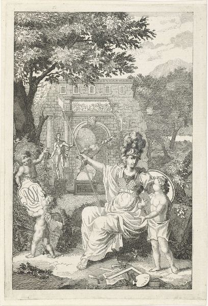 Editor: Okay, so here we have Bernard Picart's engraving from 1727, "A number of deceased philosophers and writers discussing with each other," currently residing at the Rijksmuseum. My initial impression is that the density of detail almost makes it feel dreamlike, a crowded and very eloquent dream, maybe? What's your take on it? Curator: Ah, yes, "Dialogues of the Dead." Picart has this fantastic ability to cram the scene full, hasn't he? And dreamlike is perfect! Imagine these historical figures finally free to hash things out without earthly constraints. Don't you feel drawn in, as if eavesdropping on a cosmic coffee klatch? What catches *your* eye most in this gathering of greats? Editor: Definitely the figures. It looks like he put so much effort into making each person have unique features and clothing. I guess that was important for the viewer back then, to know exactly who was who. Does that mean people would have immediately understood who was present at this 'cosmic coffee klatch'? Curator: Exactly! Each face, each garment – meticulously researched, utterly intentional. But look closer: it's not just portraiture; it’s a commentary. Observe how he places Plato in conversation with... Caesar? What's *Picart* trying to say about philosophy versus power? The man's practically directing a play! Editor: That's really fascinating. So, it's less about historical accuracy and more about Picart's own agenda, putting these figures in dialogue for a reason. Like intellectual chess. Curator: Intellectual chess! I love that! It certainly makes you wonder what current figures he'd include today. And what *earthly* debates they might resolve if given the chance. It really shifts how I'll consider similar engravings now, considering that. Editor: Me too. Thanks to this work, the art of historical debate will stick with me forever!