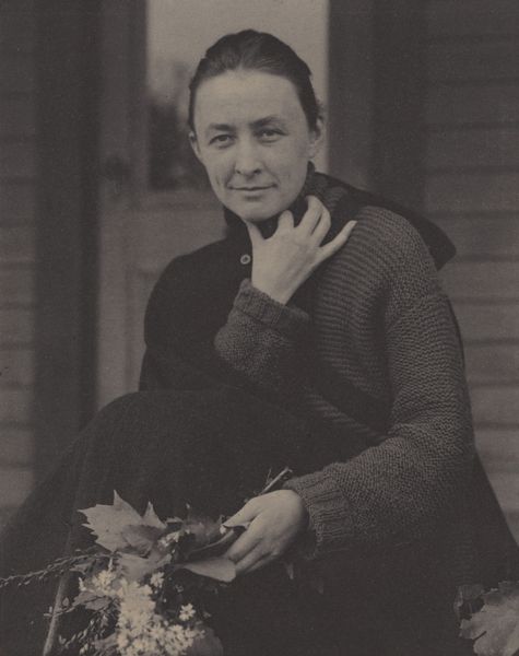 Alfred Stieglitz made this photo of Georgia O'Keeffe, his partner and muse, using gelatin silver print. It's all about subtle tones, with soft gradations and moody contrasts. You can sense Stieglitz feeling his way through light and shadow, embracing the alchemy of the darkroom. The texture of the photograph is smooth, but alive. Look at the weave of the sweater O’Keefe is wearing, and how it's softened by the camera's eye. The light dapples and dims, caressing her face, and notice how her dark eyes meet yours. There’s a quiet strength there, an intelligence that pulls you in. Then, those hands, holding flowers, they look a little like a painting, don’t they? Thinking about other image makers, I'm reminded of how Gerhard Richter used photography as a kind of readymade for his paintings. Ultimately, photography, like painting, is about how to see the world, framing and transforming it, one gesture at a time.
