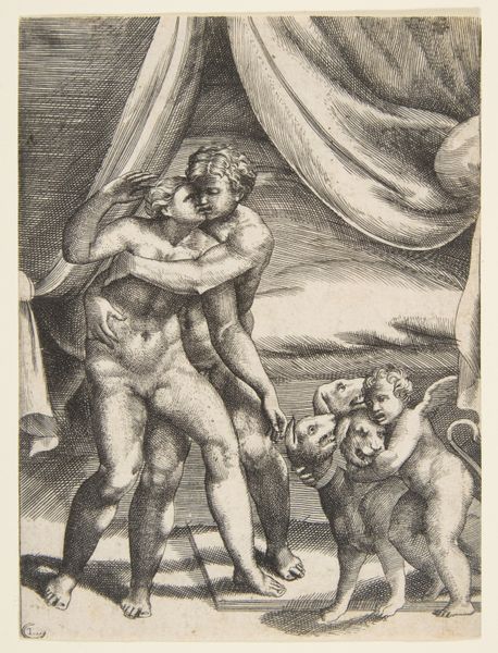 Barthel Beham made this tiny print, Cimon and Pero, around 1525, using a technique called engraving. This is an intaglio process, which involves cutting lines into a metal plate, inking the surface, and then wiping it clean so that ink remains only in the incised lines. The plate is then pressed onto paper. The resulting image is characterized by great precision, made possible by the skilled hand of the engraver. Here, the contrast between light and shadow is especially striking. This is achieved by varying the density and depth of the engraved lines to create tone and texture. The labor-intensive process emphasizes the skill of the artist. Engraving was a key technology for disseminating images widely during the Renaissance. Prints like this blur the boundary between art and craft, serving both as works of art in their own right, and as tools for communication in a rapidly changing world.
