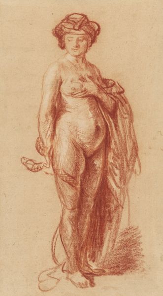 Pierre-Paul Prud'hon made this drawing, "Jeune femme se déshabillant", in France, at the turn of the 19th century, using black and white chalk on blue paper. Prud'hon’s study of a young woman undressing participates in the artistic and cultural traditions of representing the female nude. But its existence as a drawing gives us insight into academic artistic practices of the time. Artists working within the French academy would have rigorously studied the human form to prepare for history paintings or portraiture. The nude was also connected to philosophical ideals of beauty and truth. Drawings like this would be used to study the fall of light or the arrangement of drapery. By looking at the image with an understanding of academic artistic practice, we can gain an understanding of the cultural and institutional forces that shaped art making in this period.