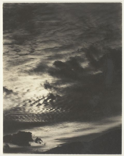 Gustave Le Gray made this photograph, "Solar Effect in the Clouds-Ocean," using the collodion process, an innovative technique at the time. In this process, a glass plate was coated with light-sensitive chemicals, exposed in the camera, and then developed. The remarkable tonal range and detail in Le Gray’s image is a testament to his mastery of this new technology. What’s also remarkable is the way he combined separately-exposed negatives for the sky and the sea, in order to create a single, dramatic scene. Photography in the 19th century was as much about chemistry and craft as it was about art. Le Gray was not just an artist but also an artisan, experimenting with materials and processes to achieve his vision. He navigated the line between scientific precision and artistic expression, challenging our assumptions about both art and craft. This image demonstrates the skill and the sheer labor involved in early photographic processes.