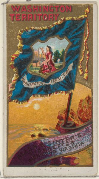 This small chromolithograph of Michigan’s state flag was produced by Allen & Ginter, a cigarette company based in Richmond, Virginia. This card, dating from the late 19th century, was part of a series of promotional items inserted into cigarette packs. The flag itself, rendered in miniature, is full of symbolic imagery: an eagle representing the United States, elk and moose representing Michigan’s natural resources, and Latin mottos invoking unity and beauty. Below the flag, we see a depiction of mining activity, highlighting the economic importance of resource extraction to the state’s identity. Produced during a period of rapid industrialization and westward expansion in the United States, the card reflects the era’s boosterism and promotion of regional pride. As historians, we might want to consider the relationship between consumer culture, the promotion of state identity, and the social and environmental impact of industries like tobacco and mining. Resources at institutions such as the Library of Congress or state historical societies could help us better understand the image’s cultural context.