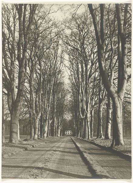 Curator: What a wonderfully evocative image. This is “[Allée of Trees, Pau],” a photograph created by William Henri Gebhard in 1854. It resides here with us at The Met. Editor: It’s a long, lonely road, isn’t it? The tonal range feels almost monochromatic, and there’s something about the light and shadow play that suggests both peace and melancholy. Curator: Indeed. As one of the earliest photographers, Gebhard was working within a specific set of material conditions. We need to consider the labor involved in setting up his equipment and the time exposure would have taken, rendering any movement blurry. What stories do these considerations tell? Editor: I am more interested in the act of making visible—of allowing a gaze at a specific locale and time that perhaps had restricted access before. This allée—was it a space of leisure? Who enjoyed its shade? Who maintained it, and what power dynamics were at play in a mid-19th century context? Curator: Exactly! The social context is paramount. We must consider the impact that photography itself had. Early photography often mirrored established artistic conventions, and this particular photograph's composition and use of light are reminiscent of landscape paintings popular at the time. The relationship to craft and material conditions here offers ways to interpret its social role. Editor: True. Understanding the context shifts our perception. How does the knowledge that the photograph comes from an era defined by expanding empires influence our experience? And if the subject of the piece focuses on the romanticized allure of nature, do we interrogate that, given that many colonized and exploited land around the world. Curator: Yes, framing our discussions like this encourages visitors to look beyond aesthetics and think critically. By understanding the materiality and labor involved, we appreciate the art in all its complexity. Editor: Precisely. By engaging with historical and political elements in art, we expand our understanding and create necessary dialogues about what is worth preserving in our contemporary society.