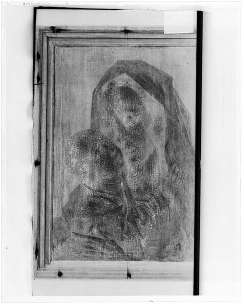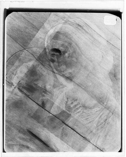 Editor: Here we see an X-radiograph of the "Coronation of the Virgin Altarpiece" by Bartholomaeus Bruyn the Elder, housed at the Harvard Art Museums. It's amazing to see beneath the surface like this! What can we learn from this technical view? Curator: This X-radiograph provides a fascinating look at the materiality and labor involved in creating the altarpiece. Consider the process: the wood panel preparation, the layering of paint, the artist's hand, but also the tools, the workshop setting, and the economy that supported this creation. Can we see evidence of changes or repairs? Editor: I think I see some inconsistencies. Curator: Precisely! This helps us understand the evolution of the artwork and the many hands, skilled and unskilled, that may have contributed to its existence. The X-ray reveals the social life of the object itself. Editor: That’s a really insightful way of looking at it. I never considered all the material processes involved!