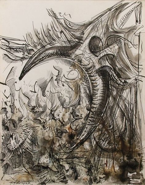 Editor: This is William Blake's "The Resurrection," and while the date is unknown, it appears to be made using ink and possibly charcoal. I'm struck by how dynamic the composition is, a real whirlwind of figures. What's your take? Curator: This ink drawing pulls me right into Blake's production process. We can see his hand at work, the quick, expressive lines. The medium itself – ink – was readily available and relatively inexpensive. Think about the socio-economic context of Blake's time, and how this availability democratized art-making, moving away from the exclusive patronage system. Editor: So you're saying the choice of materials says something about accessibility and maybe Blake's own values? Curator: Exactly. Look at the labor involved in creating these multiple figures, each rendered with such care, despite the fluid medium. Consider also Blake’s relationship to printmaking - do you see any techniques here that mirror those employed in engraving or etching? How does the lack of color serve Blake’s thematic focus on spiritual transformation, by avoiding more sensual appeal to the audience? Editor: I see how the lines almost feel like they could be etched. It does make you wonder how that printmaking background influenced even his drawings. The monochrome definitely directs your focus to the form and figures themselves. Curator: Indeed. Blake was not only an artist but also a poet and visionary. So consider this: how does the physical act of creating this drawing—the pressure of the pen on paper, the building up of ink—translate into the spiritual uprising he's depicting? It isn't simply about depicting Christ, but transforming material and labor into a visual representation of resurrection. Editor: That’s a whole new way of seeing it, considering not just what it shows, but how the making of it ties into the message. Curator: Precisely. Seeing the work as both an image and an object born from specific conditions opens up a deeper understanding. Editor: This perspective really emphasizes how the materials and the artistic process itself are integral to the artwork's meaning.