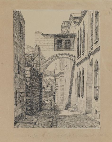 Curator: Ah, this one gives me a familiar, comfortable sort of melancholy. Like a favorite book found tucked away. Editor: That's an interesting read, tell me more! We are looking at "An Old Cistern," a pen and ink drawing crafted by James Tissot in 1889, now residing in the Brooklyn Museum. What strikes me first is its material presence, the evident labor behind this intricate, reproducible image. Curator: It feels immediate despite its age. You can almost hear the echo of footsteps on those stone steps, the slight drip of water. I think Tissot is so brilliant in this work. Pen and ink usually can be so stiff, yet he creates light and movement so seamlessly. It looks almost cinematic. Editor: Exactly, notice how Tissot exploits the stark contrast between black ink and the blank page. The penmanship produces varying degrees of shading, defining volume, the texture of the old stone, and architectural form. The medium seems entirely appropriate considering cisterns were vital for providing communities with access to potable water, particularly important for certain sectors of the nineteenth century population. Curator: You're pulling me away from the image into history! Still, I’m struck by the angle. We’re at the edge of the path looking at something just slightly off. Tissot, typically more figurative, offers us a pure landscape study – the light! The textures! I almost forget the narrative elements completely. Editor: Well, let’s consider who Tissot’s work spoke to. This piece exemplifies nineteenth-century art production and consumption: ink drawings allowed for multiple reproductions. Consider, therefore, the function, distribution, and ownership within a commodity system. How do all of these material conditions reflect or challenge traditional class distinctions? Curator: Oh, I am sure somebody in the French academic circle owned it. All the better to have it there, staring at you! Seriously though, to engage with the beauty of craftsmanship does have something truly egalitarian at its core. Editor: Indeed, maybe we’re both right then! What I appreciate most is how Tissot employs relatively simple materials to convey quite intricate concepts. The drawing makes me ponder the complex connection between resource availability, labor, and societal structure. Curator: And me… back to that dusty light, making even the ordinary beautiful and filled with hidden narratives.