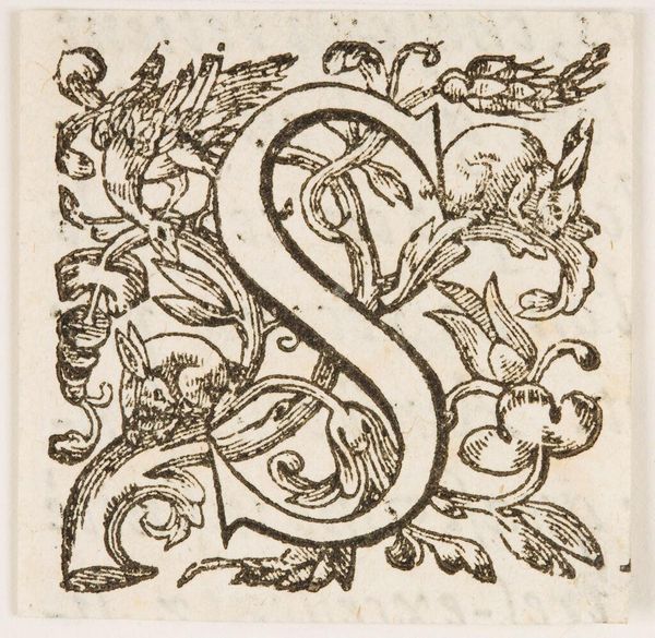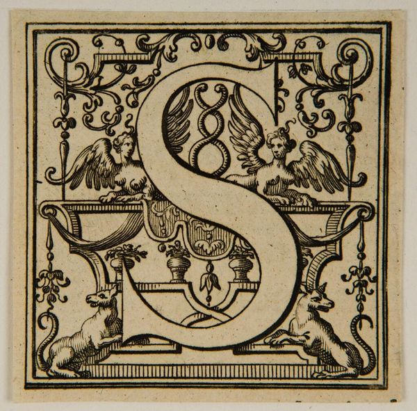 Editor: Here we have an initial, the letter S, from the Press of Louis Rabier, crafted by an anonymous artist. It feels like peering into a tiny, fantastical world! What do you make of this little world? Curator: Isn't it enchanting? The letter S, a portal to imagination! I see playful putti nestled within swirling foliage and delicate ornamentation. It whispers of Renaissance sensibilities, a dance between classical ideals and burgeoning humanism. Do you see the contrast between the crisp lines of the letterform and the organic chaos surrounding it? Editor: I do! It’s like order and chaos coexisting. I never thought I'd find so much to ponder in a single letter. Curator: Exactly! It reminds me that even the smallest things can contain multitudes if we allow our minds to wander within them.