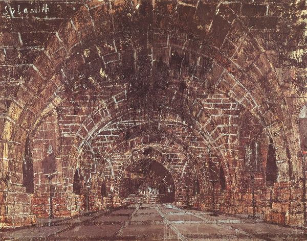 Editor: Here we have Gerd Winner's "Underground Highbury and Islington" from the Tate collection. It's quite a stark image, almost oppressive with its dark, symmetrical composition. What do you make of it? Curator: It resonates with a feeling of solitude, doesn't it? The tunnel form pulls you in. Winner often explores urban spaces, capturing their inherent geometry. This image, however, goes beyond mere documentation. It's as if the tunnel itself is breathing, a contained, echoing space. I wonder, does it trigger any personal memories or emotions for you? Editor: I guess it reminds me of waiting for a train, that anticipation mixed with a slight claustrophobia. It's interesting how Winner makes the ordinary feel so monumental. Curator: Precisely! He elevates the mundane. And perhaps, invites us to contemplate the hidden beauty within these functional spaces. It makes me think about the journeys we take, both physical and metaphorical. Editor: That's a great point. I hadn't considered that.