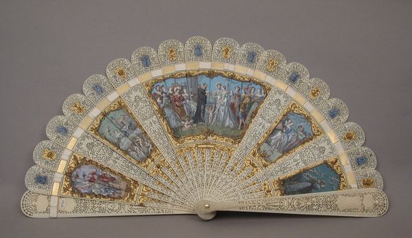 This fan was made by an anonymous maker from paper, bone and silver. The paper leaf is delicately painted with a scene of revelry around a “freedom tree”, referencing revolutionary ideals. Yet the fan itself speaks to a different kind of social dynamic. Fashionable accessories like this one were highly prized consumer goods. Its assembly required considerable skilled labor. The bone struts were carved with precision, while the silver inlay added a luxurious touch. The watercolor painting on the paper demanded careful handling, suggesting it was perhaps made by a trained artist rather than the same artisan who produced the bone structure. Consider how such an object becomes charged with social meaning. Although it displays overt imagery of freedom, the fan's precious materials and skilled making speak to hierarchies of labor and consumption. By considering the processes and materials involved, we can appreciate how this object transcends the boundaries between craft, design, and social commentary.