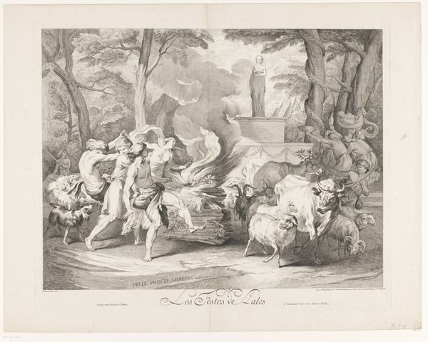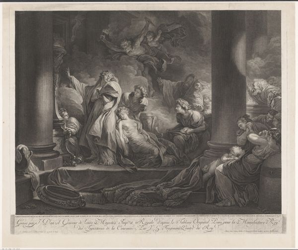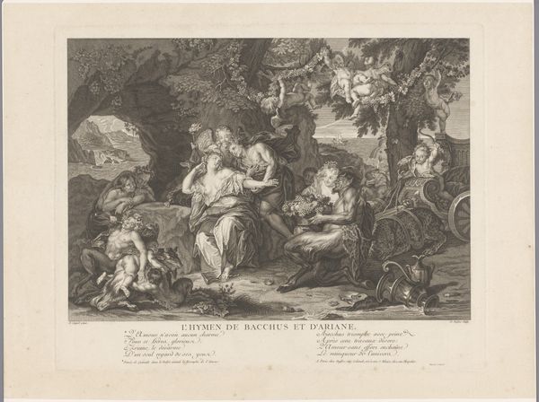 This print, "Tuin der Liefde," or "Garden of Love," was made by Louis Simon Lempereur, a French artist, sometime in the 18th century. It offers a window into the social rituals and idealized visions of love among the French aristocracy. The scene, replete with classical architecture, mythological figures, and elegant courtiers, speaks to the cultural values and aspirations of the time. Set within a garden, a space traditionally associated with leisure and courtship, the image evokes themes of romance, beauty, and social harmony. The inclusion of cherubs and classical statues reinforces the idealized nature of the scene, reflecting the influence of classical art and literature on the artistic sensibilities of the period. To truly understand this work, we might turn to conduct archival research, to explore the social customs, and artistic conventions of 18th-century France, gaining insights into the complex interplay between art, power, and social identity.