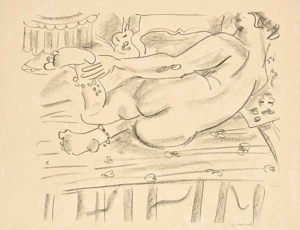 Henri Matisse made this drawing, Nu couché sur sol fleuri, with what looks like pencil, and it’s all about the joy of line. Matisse is famous for his color, but here, the absence of it lets us focus on the way the line dances across the paper, describing the figure and the floral pattern beneath. Look at the weight of the lines – sometimes thin and tentative, other times bold and confident. There’s a real sense of play in how he captures the curves of the reclining nude. Take the line that defines the model’s back – it’s not one smooth curve, but a series of small, almost hesitant strokes. It gives a sense of the body's softness, its yielding to the surface beneath. In a way, it reminds me of Picasso’s drawings from around the same time, but where Picasso can be aggressive, Matisse is always about pleasure. It is as though he is inviting you to come and share in the delight of drawing.