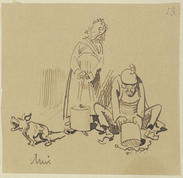This sketch, "Herr Knopp stößt im Vorbeigehen seine putzende Frau aus dem Fenster," by Wilhelm Busch, offers a glimpse into 19th-century German society. Busch lived in a time of significant social upheaval, including industrialization, urbanization, and changing gender roles. The image depicts Herr Knopp casually pushing his cleaning wife out of the window. It’s a stark depiction of domestic life, revealing power dynamics within marriage and the dismissive treatment of women's labor. The act of pushing his wife suggests a lack of respect and perhaps even a violent assertion of dominance. It’s difficult to say whether Busch created this sketch to reinforce or critique these behaviors. Busch's work often utilizes humor to convey deeper meanings, inviting us to reflect on the social and personal dimensions of such interactions. It remains a potent reminder of the complex layers of gender, class, and power inherent in everyday life.