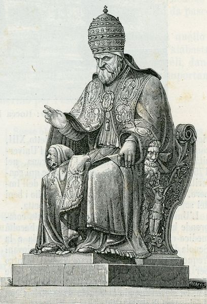 This is a portrait of Pope Pius II by an anonymous artist, made using engraving. The papal tiara is a dominant symbol here, signifying not just religious authority but also the accumulation of power through its three crowns. Consider how this echoes the ancient Persian king's tiara, an emblem adopted by the papacy to visually assert their spiritual and temporal dominion. Even the cross adorning Pius’s garments is laden with import, harking back to early Christian symbols of sacrifice and redemption, yet here, it serves as a marker of status. These symbols, though rooted in religious narratives, resonate beyond mere theological doctrine, influencing cultural memory and engaging the viewer on a subconscious level. They reveal the non-linear, cyclical progression, resurfacing, evolving, and taking on new meanings in different historical contexts.